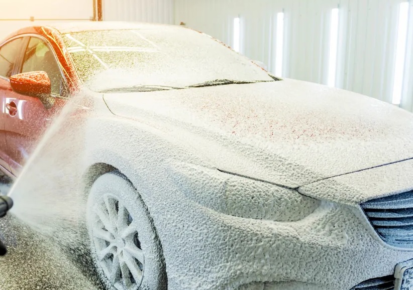 Pulse el botón de espuma y cubra todo el vehículo.